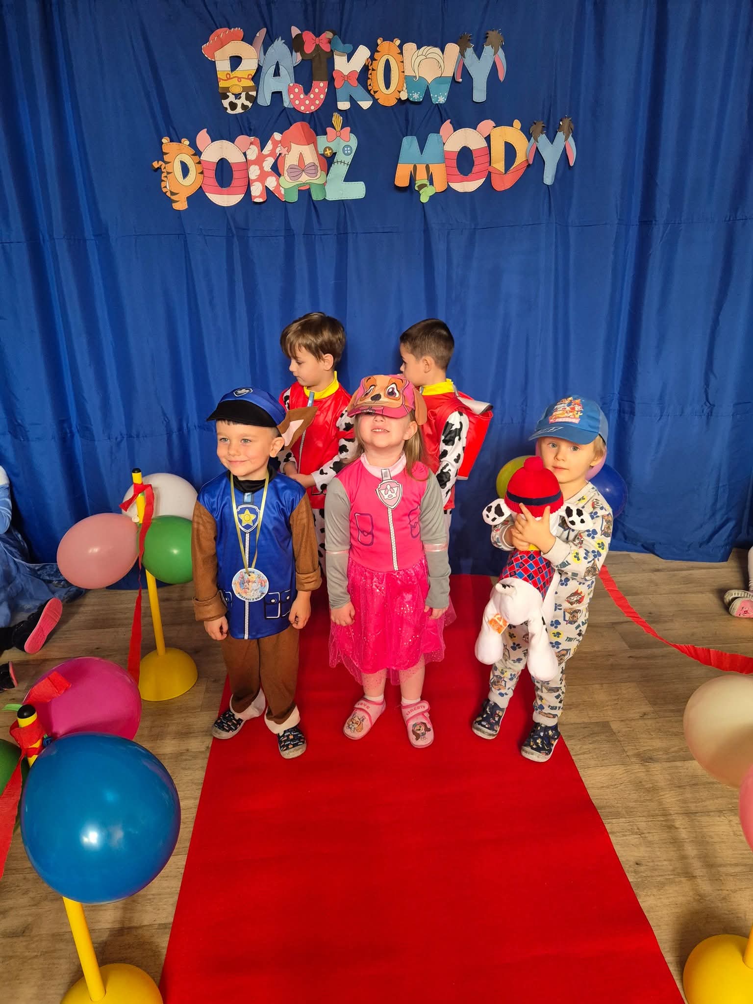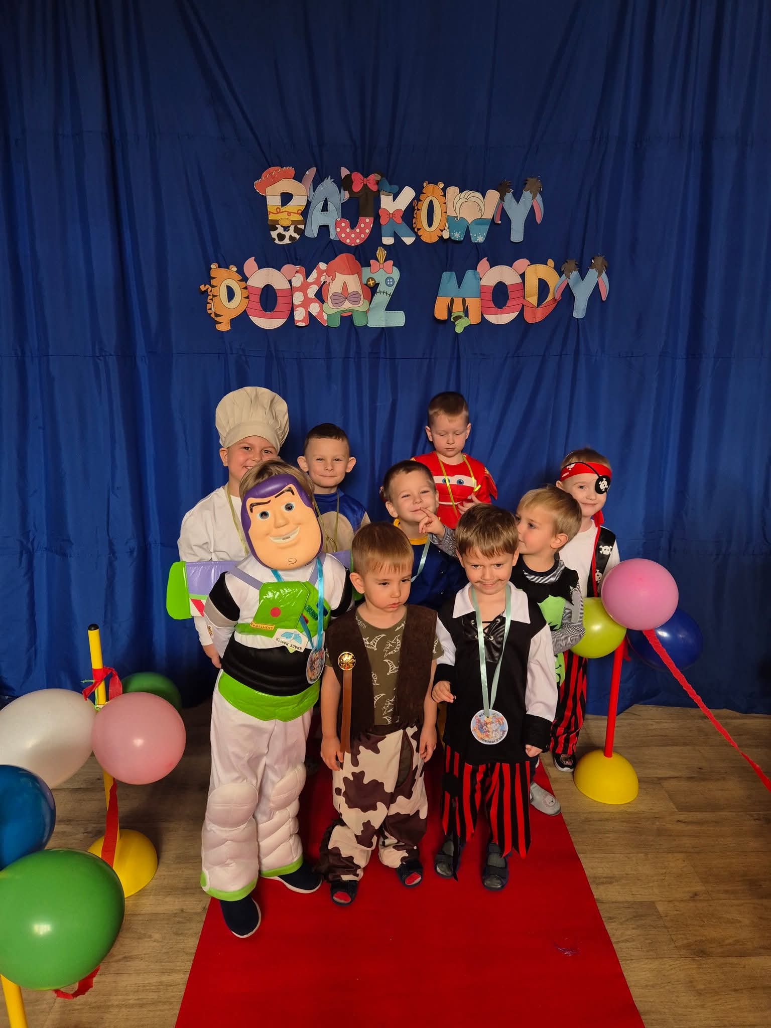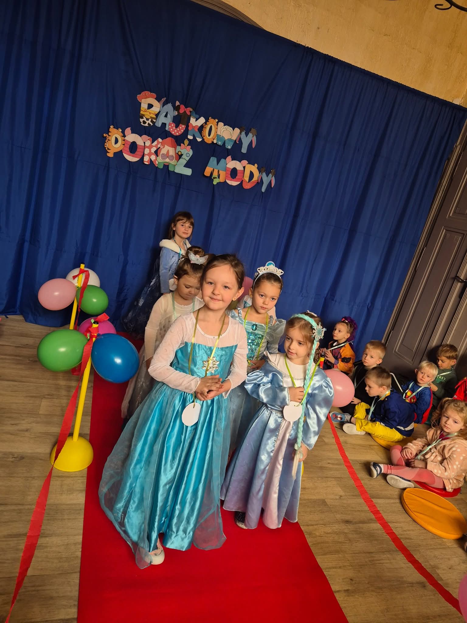 Po czerwonym dywanie dumnie kroczyli mali modele i modelki z grupy IV, V, VI i VII przebrani za swoich ulubionych bohaterów z bajek. Nie zabrakło księżniczek, odważnych superbohaterów, czarodziejów, wróżek, piratów, zwierzątek oraz postaci z klasycznych i współczesnych opowieści 👩🍳🦸♀️🦸♂️💃.