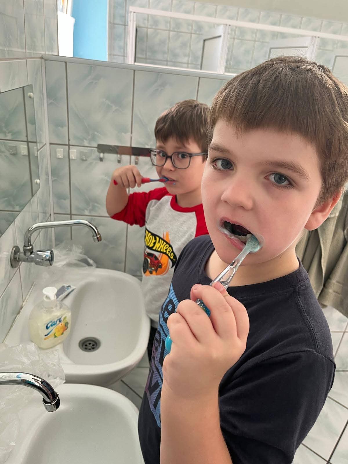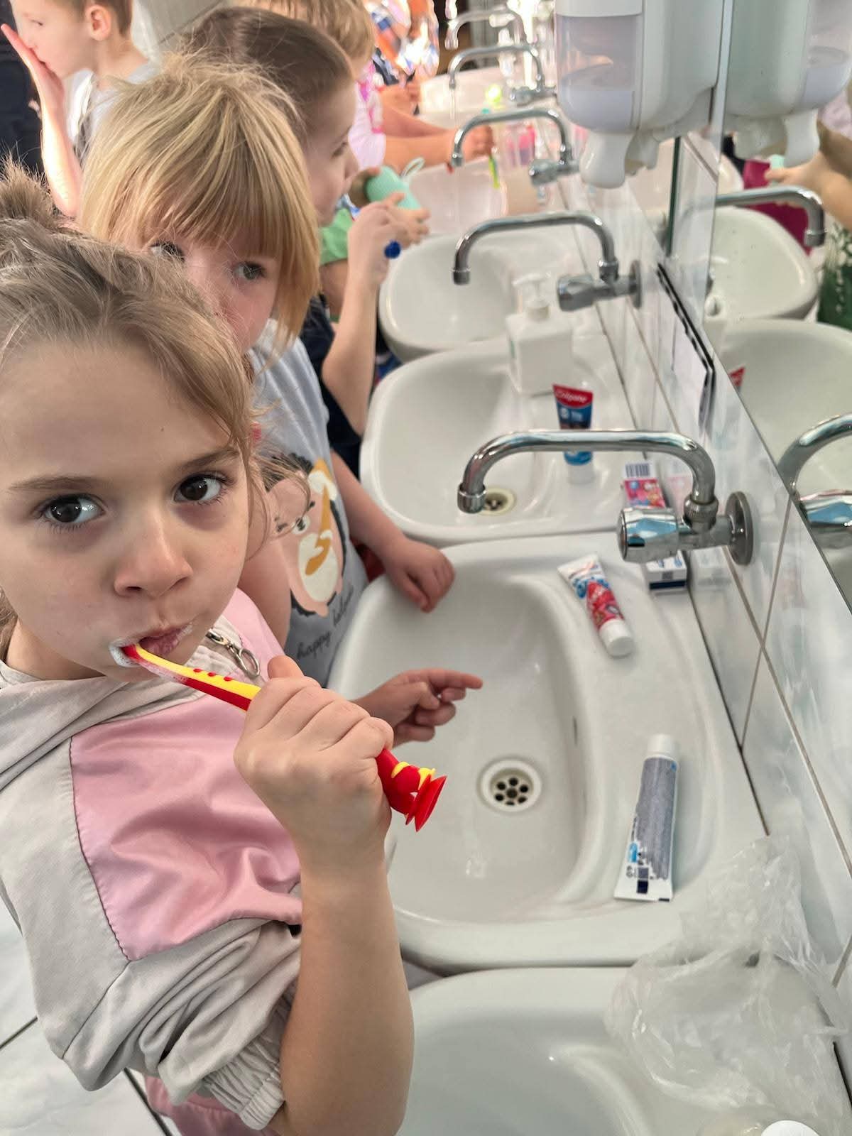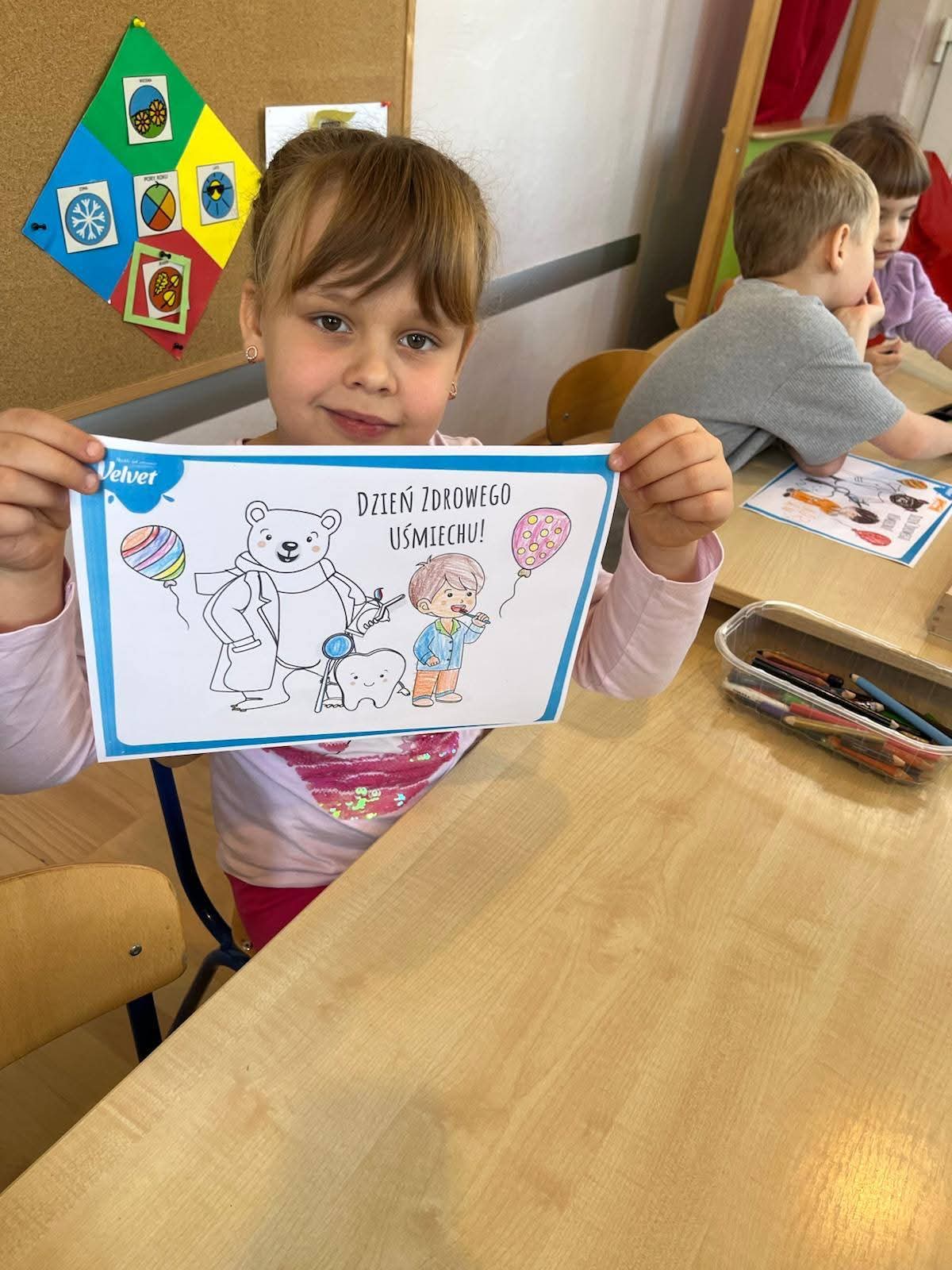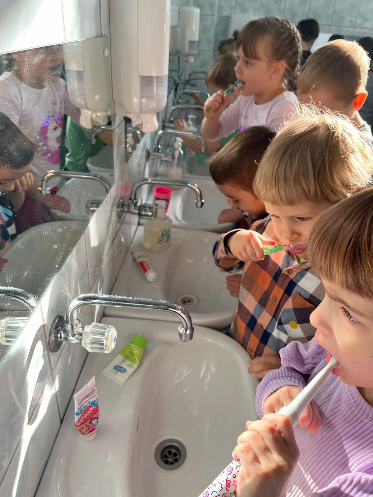 Przedszkolaki gr. I „Motylki” w ramach zajęć edukacyjnych „Zdrowy uśmiech”🦷🦷🦷 Ogólnopolskiego Programu Edukacyjnego „Rok z higieną Velvet” zgłębiły wiedzę i umiejętności dotyczące higieny jamy ustnej. Obejrzały prezentację multimedialną „Jak należy dbać o zęby?”, dowiedziały się jak wygląda gabinet stomatologiczny oglądając film edukacyjny. Zwrócono także uwagę dzieci jak należy myć zęby oraz na systematyczne kontrolowanie stanu uzębienia. W zabawach edukacyjnych podkreślono jak ważna dla zdrowych ząbków jest zdrowa dieta i jakich produktów należy unikać. Ponadto przedszkolaki w ramach zajęć edukacyjnych wspólnie myły zęby dbając o higienę jamy ustnej 🙂.
